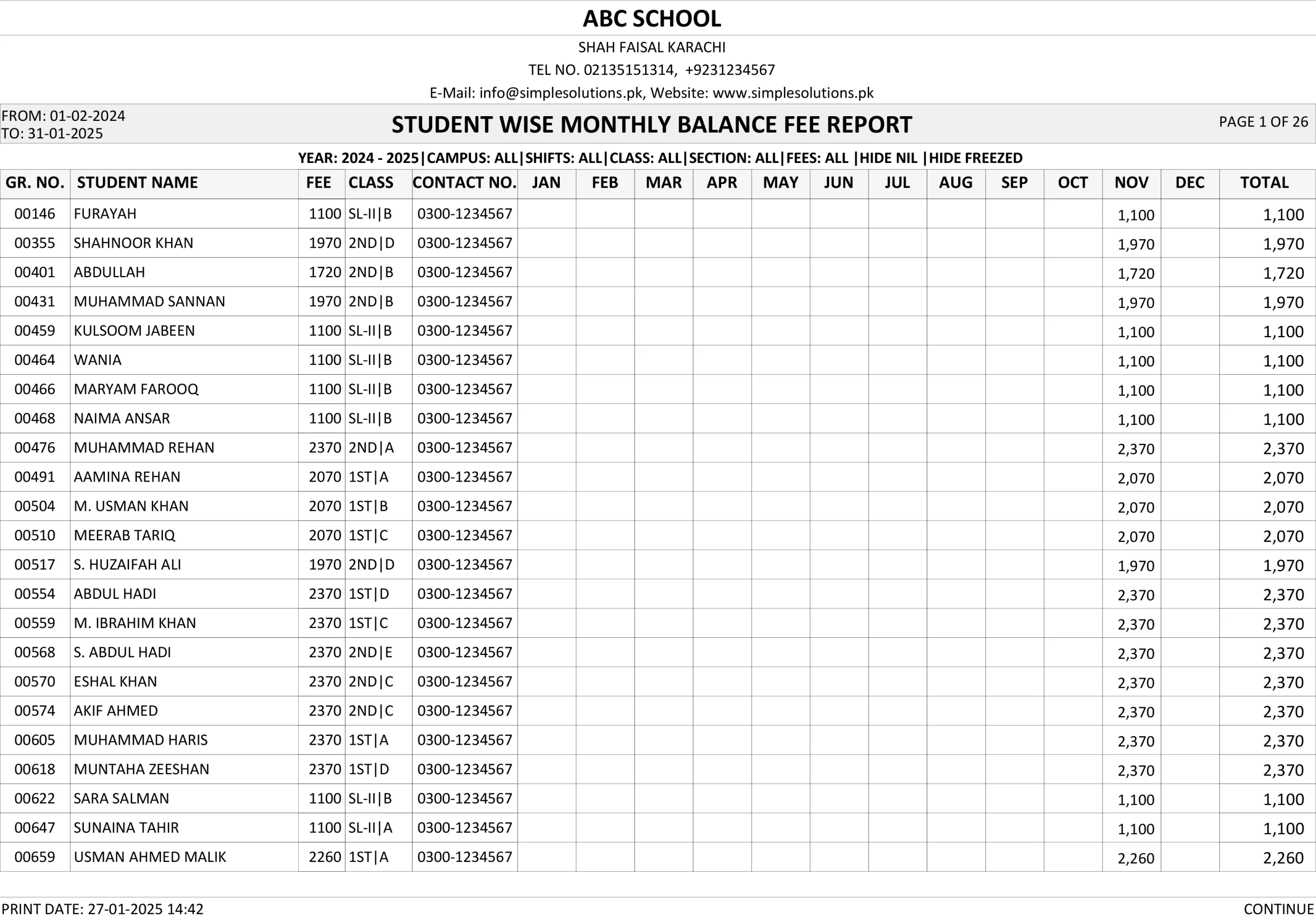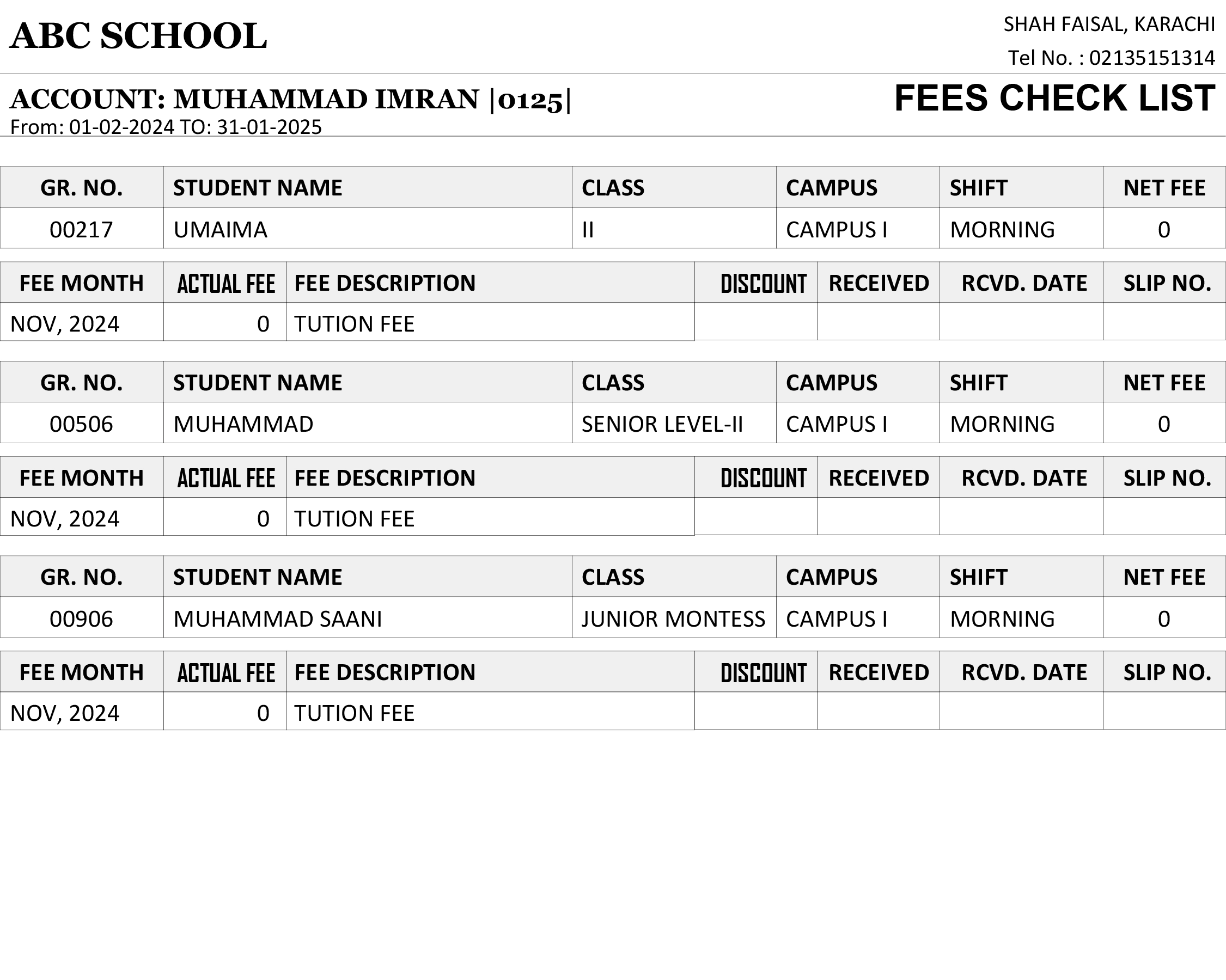 8) Guardian-Wise Monthly Fee Voucher Printing